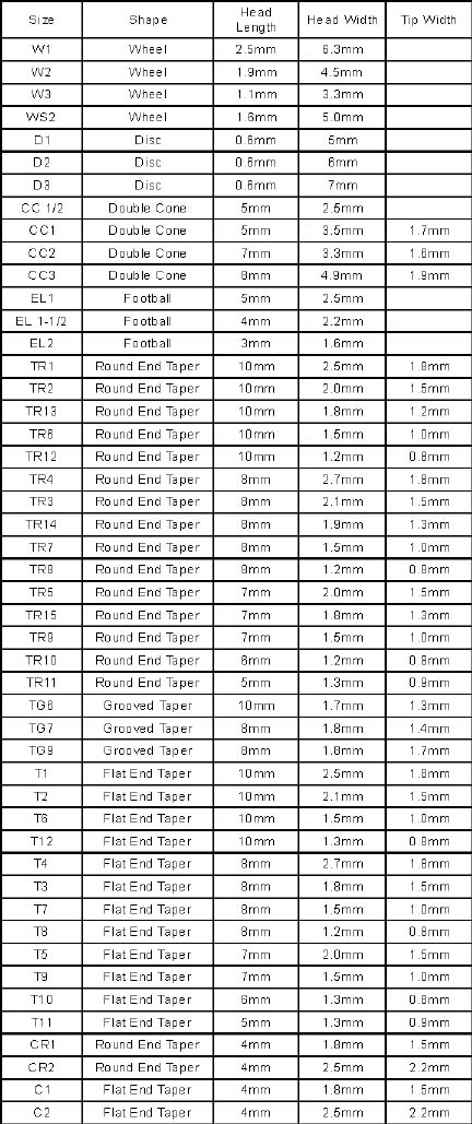 THESE DIMENSIONS WERE TAKEN FROM STANDARD COARSE GRIT TOOLS. PLEASE NOTE THAT THE DIMENSIONS WILL VARY BASED ON GRIT.