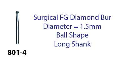 801-4 Surgical FG Quantity in Basket: none Code: 801-4 Price: $9.00 Shipping Weight: 0.05 pounds Quantity: "Surgical Length FG Diamond Ball Bur"