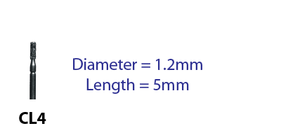 CL4 Quantity in Basket: none Code: CL4-FG Price: $5.95 Shipping Weight: 0.05 pounds Grit:: Coarse Shank Size:: Standard Friction Grip Short Shank Friction Grip Ultra Short Shank Friction Grip Quantity: "CL4 Friction Grip Diamond Bur ~ Regular Price $6.95 each ~ Available Grits: Coarse ~ Available in Standard Friction Grip, Short Shank, or Ultra Short Shank"