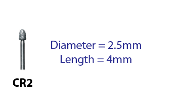 "CR2 Friction Grip Diamond Bur ~ Regular Price $6.95 each ~ Available Grits: X-Coarse, Coarse, Fine, X-Fine, Ultra Fine ~ Available in Standard Friction Grip, Short Shank, or Ultra Short Shank"