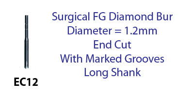 EC12 Surgical Length Diamond Bur Quantity in Basket: none Code: EC12-Surg Price: $12.00 Shipping Weight: 0.10 pounds Quantity: End Cut Surgical Length Diamond Bur 1.2mm Diameter