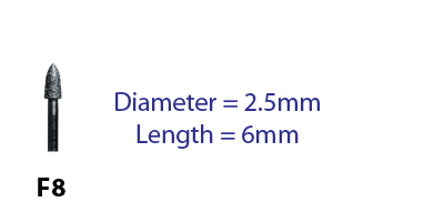 F8 Quantity in Basket: none Code: F8 Price: $5.95 Shipping Weight: 0.05 pounds Sorry, we are currently sold out of 'F8'. Please check back later. "F8 Diamond Bur ~ 1/16"" Shank ~ Regular Price $6.95 Each"