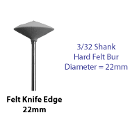 Knife Edge (22mm Diameter) Quantity in Basket: none Code: FELT-V-22 Price: $3.00 Shipping Weight: 0.05 pounds Quantity: Knife Edge (22mm Diameter) Felt Bur