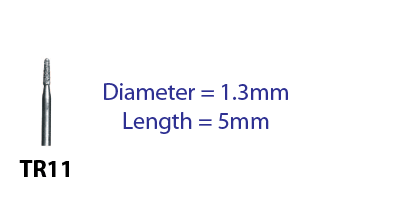 "TR11 Friction Grip Diamond Bur ~ Regular Price $6.95 each ~ Available Grits: X-Coarse, Coarse, Fine, X-Fine, Ultra Fine ~ Available in Standard Friction Grip, Short Shank, or Ultra Short Shank"