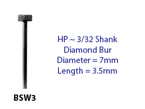 BSW3 Quantity in Basket: none Code: BSW3 Price: $7.75 Shipping Weight: 0.10 pounds GRIT:: 80 Grit 150 Grit 200 Grit 400 Grit 600 Grit Quantity: "BSW3 Diamond Bur - 3/32 Shank"