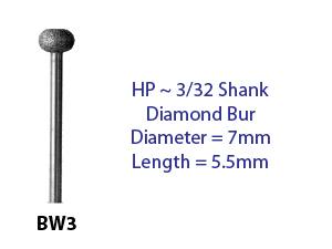 BW3 Quantity in Basket: none Code: BW3 Price: $7.75 Shipping Weight: 0.10 pounds GRIT:: 80 Grit 150 Grit 200 Grit 400 Grit 600 Grit Quantity: "BW3 Diamond Bur - 3/32 Shank"